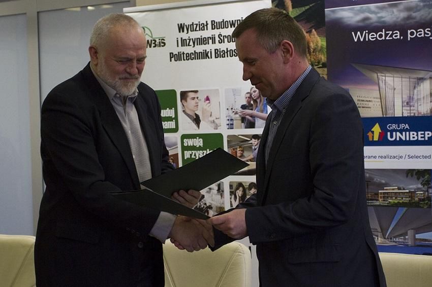 Unibep SA oraz Politechnika Białostocka podpisały umowę o współpracy. Umowa dotyczyć będzie wspólnych przedsięwzięć Wydziału Budownictwa i Inżynierii Środowiska oraz tej liczącej się nie tylko w kraju firmy budowlanej.