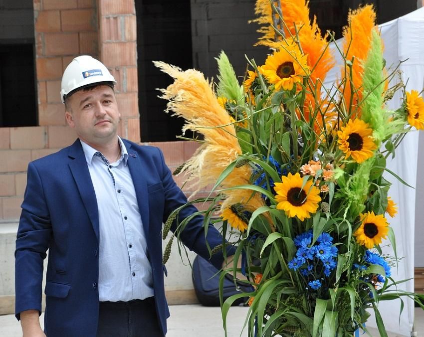 Wiechę zawiesił Tomasz Grygoruk, kierownik budowy (na zdjęciu).