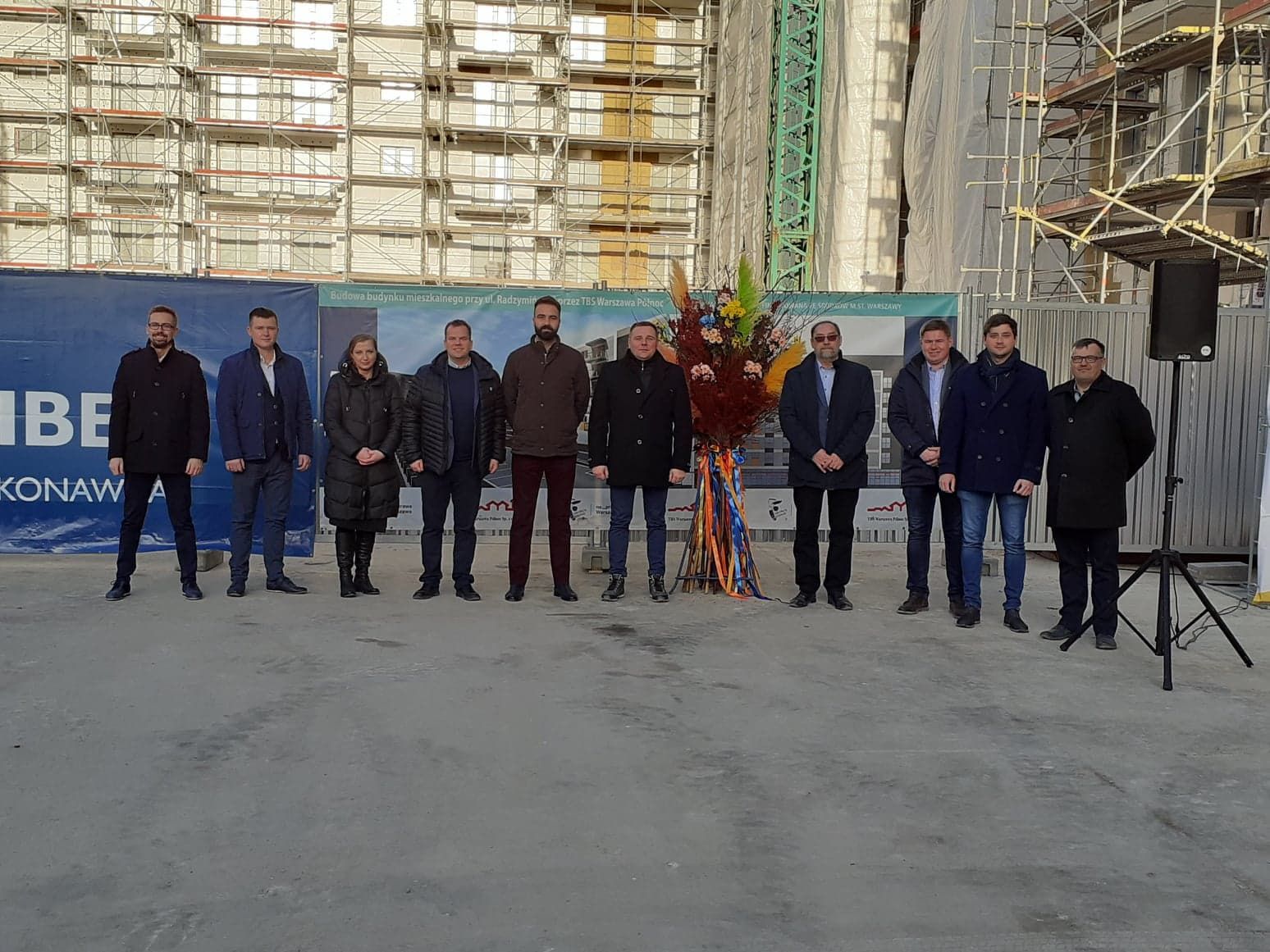 Na placu budowy spotkali się przedstawiciele generalnego wykonawcy, inwestora TBS Warszawa Północ, Burmistrz Dzielnicy Targówek, architekci, Zarząd Biura Polityki Lokalowej oraz inspektorzy, wykonawcy i załoga Unibep.
