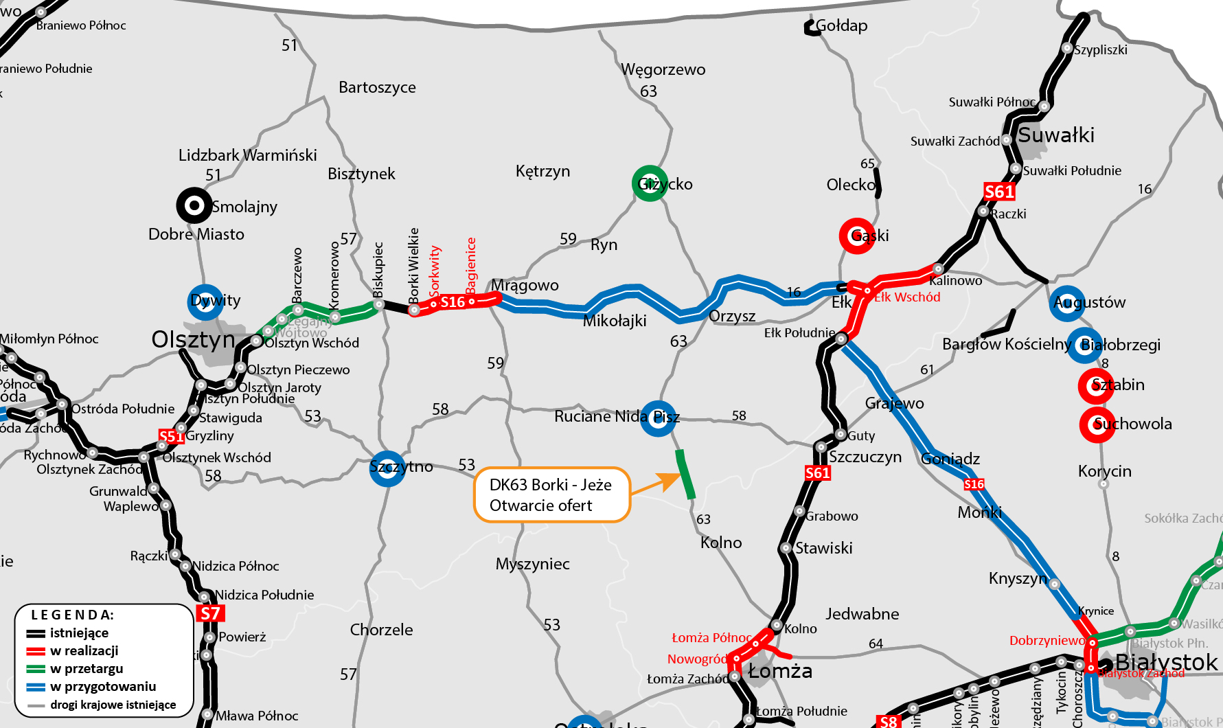 Z przyjemnością informujemy, że w dniu 8 września 2023 roku otrzymaliśmy zawiadomienie od Generalnej Dyrekcji Dróg Krajowych i Autostrad Oddział w Olsztynie, że nasza oferta została wybrana jako najkorzystniejsza w postępowaniu o udzielenie zamówienia publicznego dotyczącym "Rozbudowy drogi krajowej nr 63 na odcinku Borki – Jeże". Wartość inwestycji to ponad 95 milionów złotych.